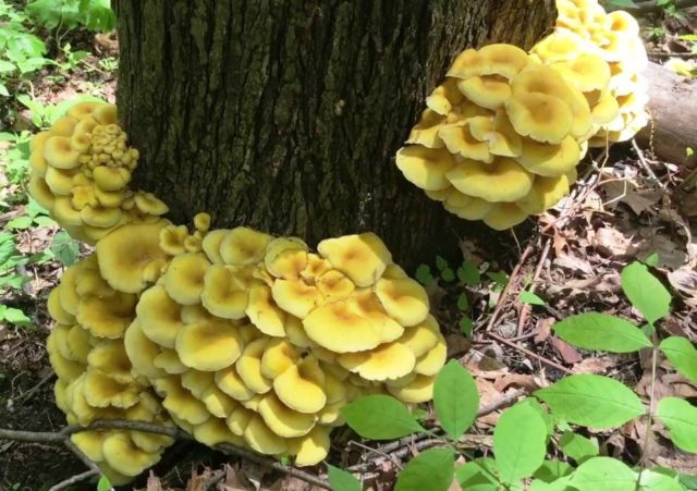 Los hongos ostra amarillos se ven apetitosos incluso cuando crecen en un árbol