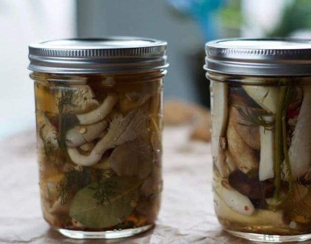 Los champiñones en escabeche se consideran el refrigerio n. ° 1. Los ilmaki son deliciosos en forma pura y como ingrediente en ensaladas. Para marinar la cosecha cosechada, debe preparar la marinada. Por 1 litro de agua agregue 1 cucharadita. azúcar, 0.5 cucharadas. l. sal y 1 cucharada. l. vinagre. De las especias toman la hoja de laurel, los granos de pimienta negra. Después de hervir el agua, agregue todos los ingredientes junto con los champiñones, cocine a fuego lento durante unos 30 minutos. Al Ilmakam marinado se le da un poco de tiempo para que se enfríe, se coloca en frascos y se cubre con tapas. Cuando los champiñones estén completamente fríos, se envían al frigorífico.