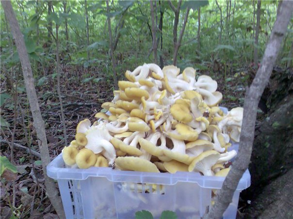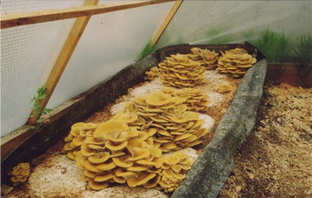 En la foto, el hongo ostra limón crece en un lecho de jardín cargado de sustrato. Sin embargo, la práctica más común es el cultivo de hongos en bolsas. El sustrato se prepara a partir de paja, heno, cáscaras de semillas, aserrín. La materia orgánica se vierte con agua, se hierve durante 2 horas, se deja escurrir y enfriar. Se considera bueno un sustrato del que se desprenden unas gotas de agua cuando se aprieta con el puño.