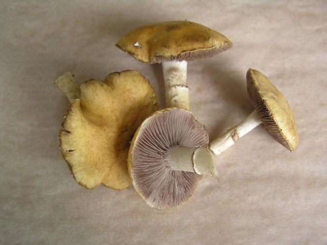 Un gemelo venenoso no comestible, que se distingue por un sombrero con un diámetro de 3 a 10 cm. Su color es marrón amarillento, en el centro hay un tubérculo más oscuro. A veces, el gebeloma se vuelve rojo ladrillo. Su pata es larga, delgada, alcanza una altura de 3 a 10 cm Gebeloma crece en grupos debajo de álamos, robles, abedules, en claros y bordes de bosques. Madura de septiembre a noviembre.
