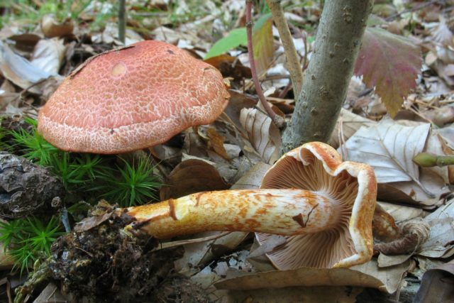 Falso doble de russula con un pequeño casquete de hasta 7 cm de diámetro, de forma ligeramente convexa o postrada. Hay escamas rojas o anaranjadas en la superficie. La pulpa del hongo es densa, no comestible, amarillenta, con un olor desagradable. La pata es corta y gruesa, de hasta 6 cm de largo, el gorro se encuentra en septiembre y octubre, en zonas húmedas, bajo abedules y pinos.