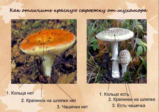 Para distinguir una russula falsa de una real, es necesario conocer las características de cada especie. Muy a menudo, las especies comestibles se confunden con los agáricos de mosca y las setas venenosas. Estos hongos venenosos son los más comunes en Rusia.