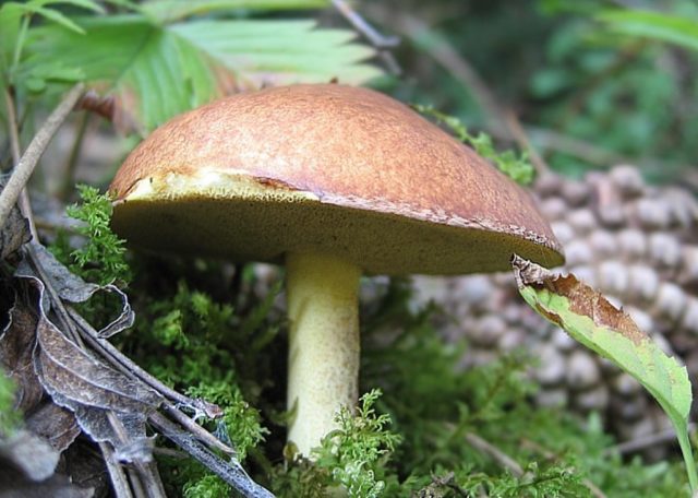 - Lata de aceite de cedro... Un espécimen comestible con una tapa de color marrón oscuro. En los hongos jóvenes, tiene forma hemisférica, con la edad se vuelve fibrosa y en forma de cojín. La pata de color marrón amarillento crece hasta 10 cm, la carne es carnosa, fibrosa, con un ligero aroma a hongos. La especie crece en cedros jóvenes y bosques de coníferas. Se puede encontrar en el Lejano Oriente y Siberia. La fructificación se produce en el momento de la floración del pino desde julio hasta finales de septiembre.