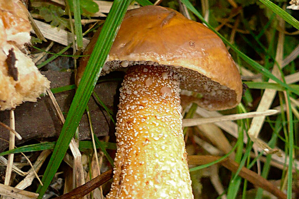 - su gorro es pegajoso y liso, mientras que el de un pantano está cubierto de escamas ásperas;