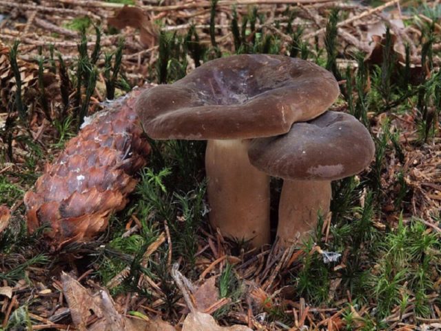 - lechero sin zona - un hongo comestible con una tapa más plana y bordes lisos, de color marrón claro.