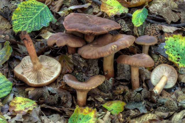 El marrón lechoso, que puede ver en la foto, se parece a los siguientes hongos en apariencia: