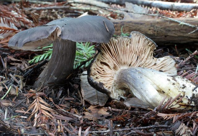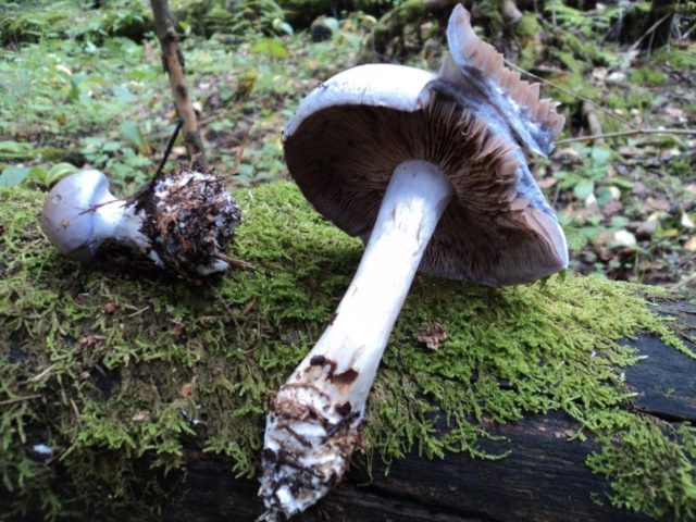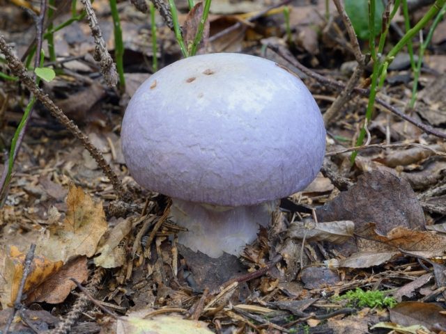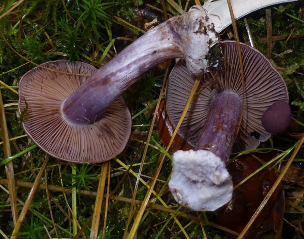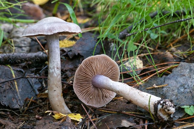 Webcap blanco-violeta... Incomible. Se diferencia en la forma de una gorra con un crecimiento distinto en el centro, un tamaño más pequeño y un tallo más largo. Tiene un delicado tono lila plateado en toda la superficie. Los platos son de un marrón sucio.