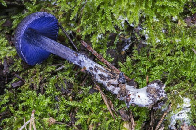 Webcap azul agua... Comestible. Difiere en un rico tono ocre azulado de la gorra y una pierna más clara y fuertemente pubescente. La pulpa tiene un olor desagradable.