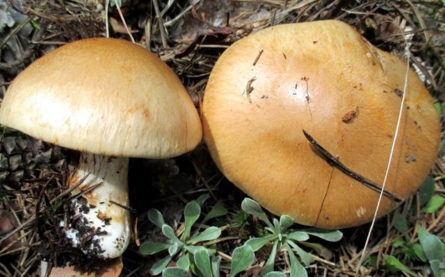 Webcap grueso y carnoso (BBW). Comestible. La principal diferencia es el color gris amarillento de la pata y la pulpa grisácea, que no cambia de color al presionarla.