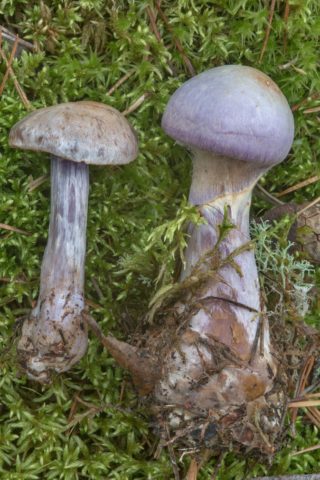 Un hongo bastante grande con un color púrpura al comienzo del crecimiento; en especímenes más maduros, el color se ilumina, adquiere un tinte azulado. Un rasgo distintivo es la presencia de un velo general púrpura, denso, parecido a una telaraña, que cubre por completo a los ejemplares jóvenes.