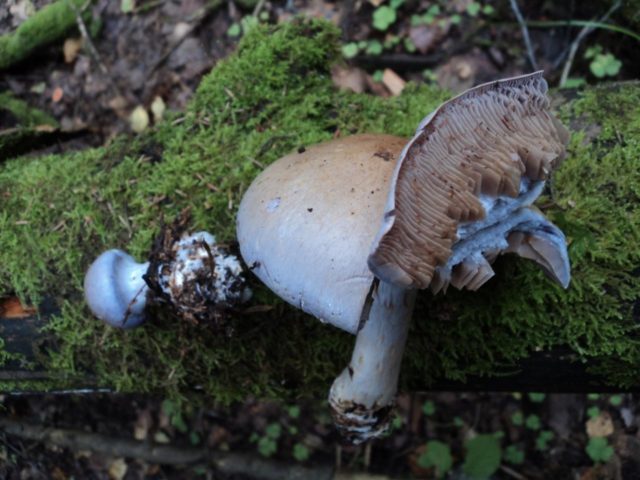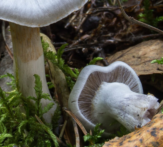 - la capa laminar es lila, a medida que maduran las esporas, se vuelve marrón claro;