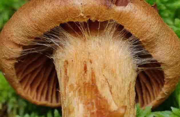Las diferencias radican, ante todo, en los colores: las setas son más claras, tienen cinturones de color ocre en la pierna. Además, los hongos de miel tienen una tapa bastante carnosa con un himenóforo tubular (en la telaraña más hermosa, es laminar). No te olvides del moco que tradicionalmente cubre el agárico de miel, que no poseen los cuerpos frutales de la telaraña. El brillo de su sombrero no será resbaladizo al tacto, sino aterciopelado.