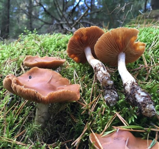- Webcap blanco-violeta: se considera un hongo condicionalmente comestible de mala calidad. La superficie del gorro es lisa, brillante, pintada en color lila-plateado con manchas ocres, lo que la hace distinguible de las especies descritas.