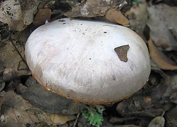 La gorra plateada se distingue por su carne plateada. En la parte inferior hay platos de color púrpura. A medida que crecen, cambian de color a marrón u ocre, con un tinte oxidado.