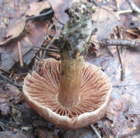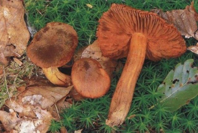 - El azafrán es un habitante del bosque no comestible que crece entre coníferas, cerca de cuerpos de agua, a lo largo de carreteras.Ocurre desde julio hasta la primera helada. La tapa tiene un tamaño de hasta 7 cm y está cubierta con una piel fibrosa de color marrón rojizo. La pulpa es densa, no tiene olor ni sabor.