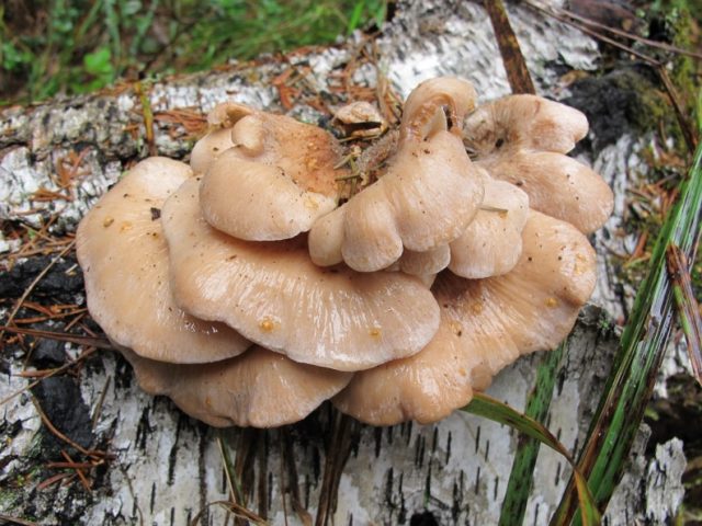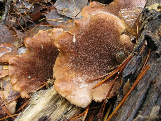 Los cuerpos frutales son tapas en forma de concha sin patas. Crecen en madera, creciendo juntas en varias piezas.