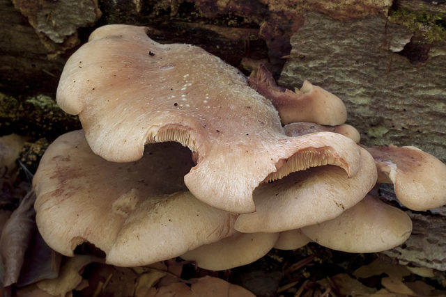 Los recolectores de hongos sin experiencia pueden confundir la hoja de sierra de oso con los hongos ostra comestibles. Las principales diferencias son un olor agrio desagradable y los bordes dentados de los platos.