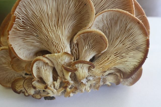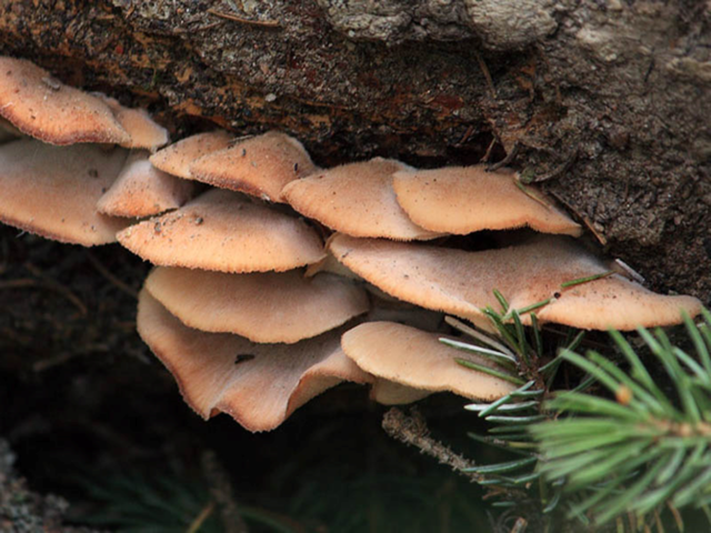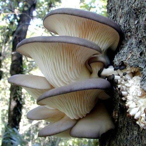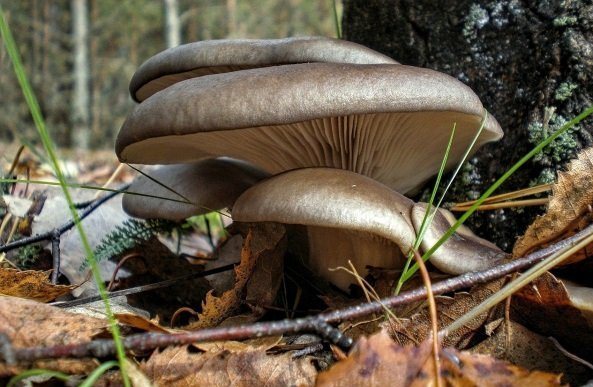 - La forma de los hongos ostra comestibles es difícil de distinguir de la hoja de sierra. Pero son de color gris claro, a veces adquieren un tinte púrpura. La superficie del gorro es lisa, ligeramente aterciopelada. Crece en bosques de coníferas caducifolios.