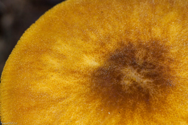 - Vena dorada (Pluteus chrysophlebius) es un hongo más pequeño, no aterciopelado, con un patrón diferente en el centro del sombrero.