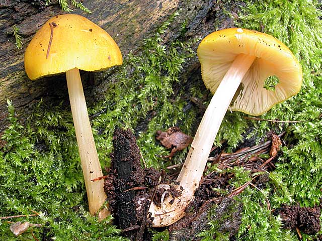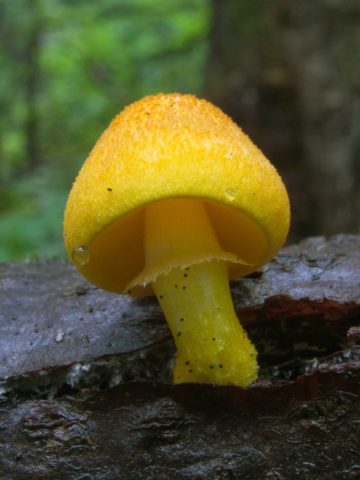 - Payaso de Fenzl (Pluteus fenzlii): una característica distintiva es el anillo en el tallo y el color muy brillante de la tapa. La saliva más amarilla de todas las variedades de saliva amarilla.