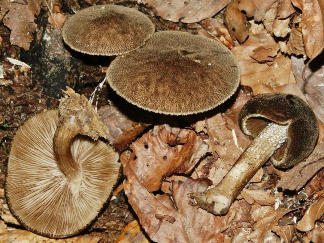 - Mudleg - un espécimen raro y no comestible. Crece en madera de hoja caduca en descomposición. Rasgos distintivos de la especie: superficie con trazos radiales y placas de color rosa claro. La pulpa es densa, blanca como la nieve, de sabor amargo, sin un olor pronunciado a hongos.