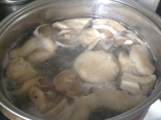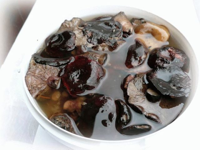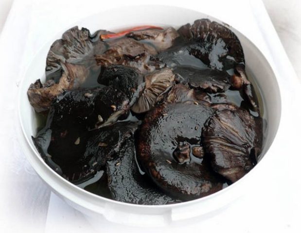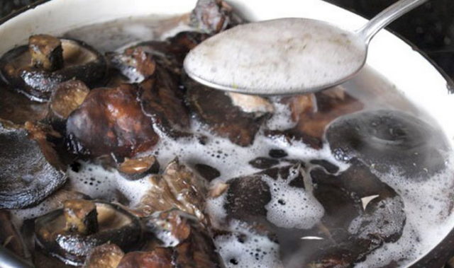 - los cuerpos frutales que se han oscurecido se colocan en una cacerola y se llenan completamente con agua; el líquido debe cubrir los hongos por completo;