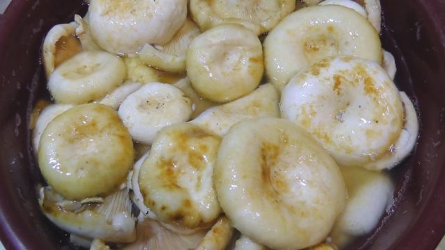 Para eliminar mejor el jugo lechoso de la pulpa de los champiñones, se deben remojar antes de salar de acuerdo con el algoritmo estándar. También se recomienda hervir las setas, en cuyo caso, conservadas, contendrán un mínimo de jugo lechoso.