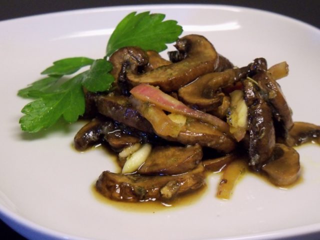 Después de 10 días, los excelentes champiñones en escabeche están listos.