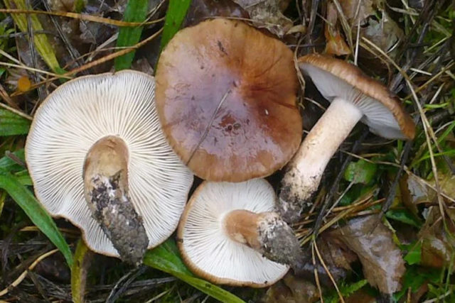 El hongo comestible tiene un tono de tapa muy similar y se parece a la variedad blanco-marrón en forma y tamaño. Pero en la pierna de la fila rota, un anillo delgado se encuentra más cerca de la base de la gorra, separa las partes blanca y marrón de la pierna.