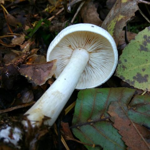 La fila laminar tiene placas anchas de color blanco o crema; con el tiempo, pueden aparecer manchas marrones en ellas.