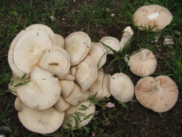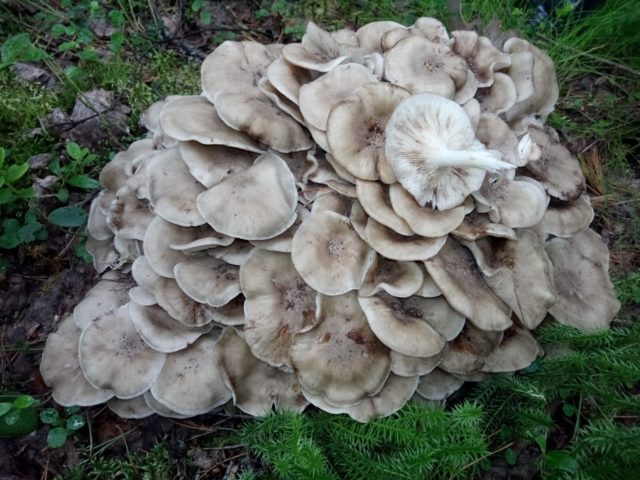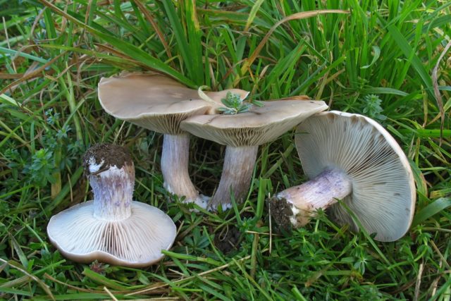El hongo se clasifica como una hilera, pero crece en densos intercrecimientos, que pueden estar a una distancia considerable entre sí. Las tapas en los ejemplares adultos son curvas y tienen bordes ondulados. Las piernas son cortas y gruesas. El color es marrón grisáceo. No hay elementos tóxicos en la composición, pero el producto no representa valor nutricional. No se recomienda su uso sin hervir previamente. El resto del género Lepista son similares en apariencia y tienen las mismas características gastronómicas.