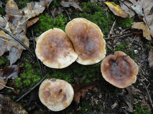 Otra especie condicionalmente comestible que se parece vagamente al ryadovka chamuscado es el lashanka o Tricholoma albobrunneum, que a menudo forma micorrizas con el pino. Estos hongos tienen una forma y un diámetro similares del sombrero, la longitud y el grosor del tallo. Incluso la coloración marrón y las manchas oscuras en un himenóforo claro pueden inducir a error. Por supuesto, a nadie se le ocurriría recoger hongos venenosos, pero a menudo se ponen en una canasta, pensando que se trata de hileras comestibles de color blanco y marrón.