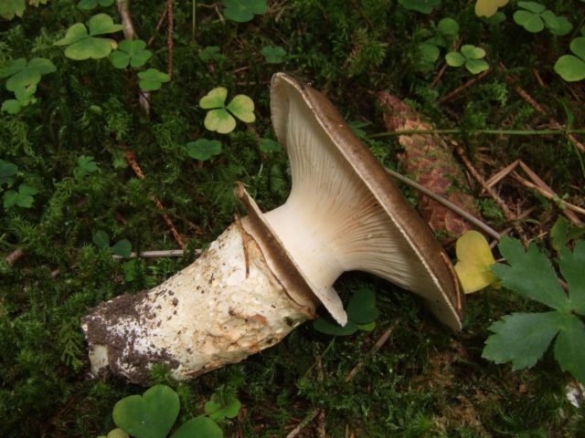 - Catatelasma real (champiñón imperial). Este hongo se diferencia del ryadovka rudkovidny en tamaños más significativos, platino adherente descendente, que se vuelve gris en la edad adulta. La pata del champiñón imperial puede alcanzar una longitud de 18 cm, mientras que la mayor parte (y a veces toda) está en el suelo. También se observa la presencia de un anillo doble.