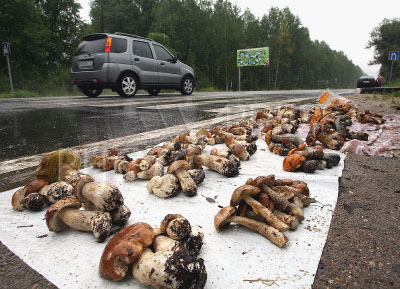 - Matsutake, o ryadovka calzado (manchado). Se diferencia del espino en un tamaño más significativo, así como en un pronunciado aroma picante de canela. En Rusia, el matsutake se encuentra principalmente en los Urales, Siberia, así como en el Lejano Oriente y Primorie.