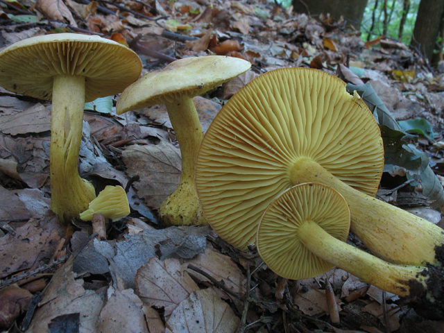- amarillo azufre no tiene escamas en la gorra. Crece en grupos en bosques de coníferas y mixtos. El sabor es amargo, el aroma es desagradable. Pertenece a especies no comestibles.