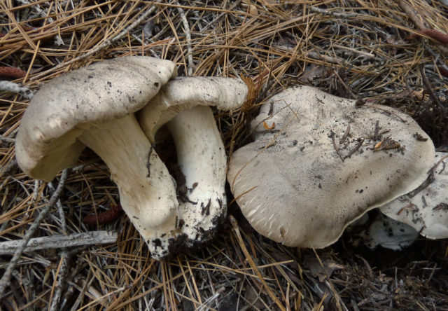 Estos hongos son de color más claro, no gris, pero de color marrón claro, los ejemplares adultos pueden ser casi blancos. La pulpa es amarillenta, con olor agradable y sabor inexpresado.Después del encurtido, los cuerpos frutales se vuelven amarillos o verde claro. Fructificación temprana (desde principios de junio), la especie crece en bosques mixtos.
