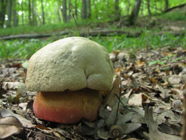 Boletus satanas: así suena el nombre del hongo satánico en latín. El origen exacto de esta denominación no se conoce con certeza. Lo más probable es que esté asociado con el color de la pierna. Su color es rojo brillante o carmesí cerca del suelo, más cerca de la gorra el tono se vuelve más claro, el color se vuelve blanco, rosa o amarillo. Por lo tanto, el hongo satánico en crecimiento se asemeja vagamente a la lengua del fuego del infierno que se escapa del suelo. El hongo satánico que crece en el bosque se muestra a continuación.