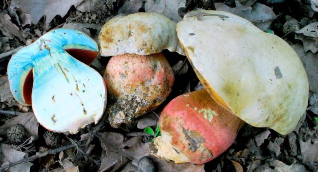 A diferencia del roble, el hongo satánico no se vuelve azul inmediatamente. En la ruptura, su pulpa primero se vuelve roja y luego solo el color cambia a azul. Dubovik, por otro lado, se vuelve azul en el sitio del daño mecánico casi de inmediato. Hay otros signos por los que se pueden distinguir estos dos hongos. La pulpa del roble es de color limón, mientras que la del hongo satánico es blanca o ligeramente cremosa. El sombrero de un roble joven tiene un agradable color oliva, volviéndose naranja o burdeos con la edad, el color del sombrero de Boletus satanas es blanco, crema o ligeramente verdoso.