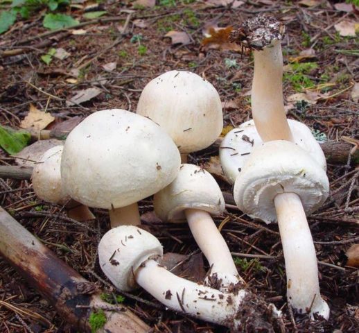 - De piel amarilla - un espécimen venenoso, cuando se ingiere provoca una intoxicación alimentaria grave. El hongo se puede reconocer por su superficie de color blanco amarillento con motas parduscas en el centro. Cuando se presiona, aparece una mancha amarilla. La pulpa es de color marrón, cuando se cocina, aparece un fuerte olor fenólico.