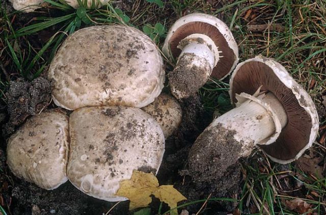 Este miembro de la familia tiene una pierna larga y delgada, que se oscurece con la edad. El hongo huele agrio y aparece una mancha marrón en el corte. La especie es venenosa.
