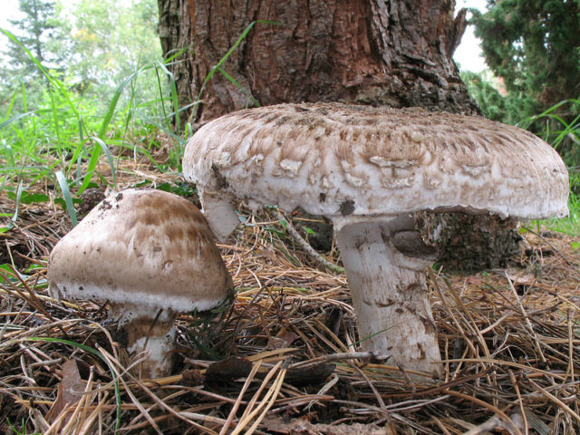 - Los hongos jóvenes de invernadero son especialmente similares a los champiñones. En el futuro, es difícil confundirlos, ya que las escamas desaparecen en la gorra y los flecos se comban.