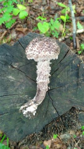 El color es el mismo que el de la gorra. Longitud - 10-13 cm La superficie es dura, fibrosa. La pierna está cubierta de grandes copos erizados. En la parte superior, la traza del anillo se pronuncia claramente. La estructura es hueca, las fibras se vuelven rígidas hasta la madurez biológica, por lo que las patas no se utilizan para el procesamiento.