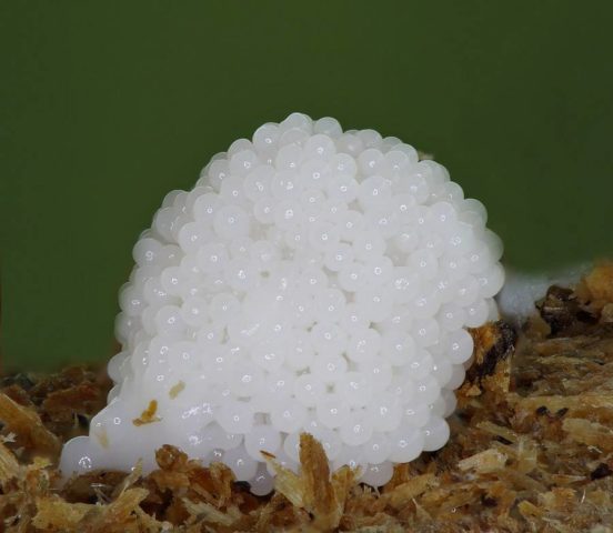 En la etapa inicial de desarrollo, el cuerpo parece un caviar blanco o amarillento.
