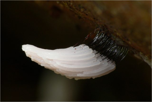 Al comienzo del desarrollo de los esporangios, blanco como la nieve, translúcido