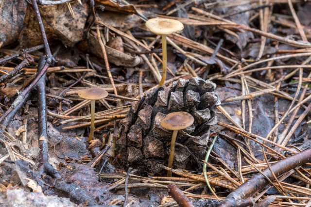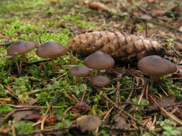 - Comestible, una pequeña especie anodina que crece en conos caídos de pino y abeto. La variedad es comestible, los gorros se utilizan fritos, guisados y en escabeche. Puedes reconocer la variedad por su sombrero en miniatura y su pierna delgada y larga. La tapa convexa hemisférica es de color café, crema o gris.Una superficie lisa se vuelve brillante y viscosa después de la lluvia. La pulpa insípida es densa y blanca, tiene un agradable aroma a hongos.