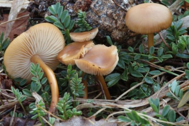 - Cherenkovy, espécimen condicionalmente comestible. Tapón convexo, hasta 2 cm de diámetro, mate, de color amarillo claro. La pierna es delgada y larga. La pulpa de los ejemplares jóvenes es de color blanco con un pronunciado olor y sabor a hongos. En los hongos viejos, es duro y amargo.