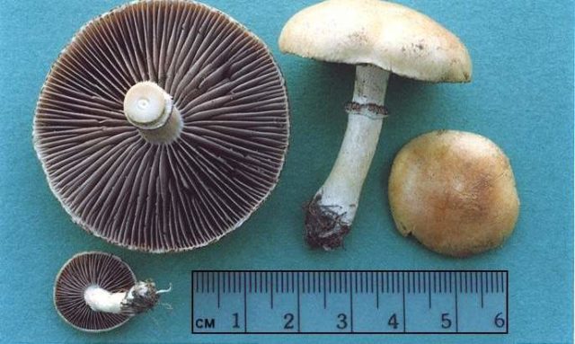 Externamente, la estrofaria de esporas negras es similar al champiñón. La principal diferencia es que en el proceso de tratamiento térmico, las placas pierden su color específico.
