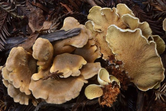 El hongo amarillo crece en bosques de coníferas, en el suelo, se esconde bajo el grosor de las hojas caídas y las agujas, no parasita los troncos de los árboles. Pertenece a la especie condicionalmente comestible, ya que cuando se presiona sobre los platos, libera un jugo amargo y picante. Durante la cocción, durante el tratamiento térmico, se puede eliminar esta desventaja.