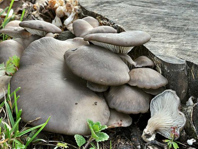 El cerdo en forma de oreja es similar a los hongos ostra. Estos hongos también parasitan en los troncos de árboles débiles, enfermos, tocones, madera muerta, tienen un casquete extendido, deprimido y liso, con forma de aurícula. También crecen en familias numerosas, como Panus tapinella. Pero el color de los hongos ostra es gris claro u oscuro, tienen una pierna blanca delgada y corta. Los hongos ostra son más pequeños que los cerdos con forma de oreja, el diámetro de su sombrero no supera los 10 cm. El sombrero del hongo ostra es más suave y terso, la carne es firme y gomosa, como la de la tapinella joven en forma de Panus. Los hongos ostra aparecen más tarde, desde finales de septiembre, pueden dar frutos hasta principios de diciembre. Estos hongos son comestibles, ahora se cultivan a escala industrial.