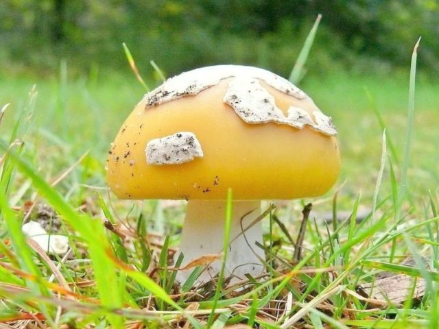 Los recolectores de hongos novatos pueden confundir fácilmente la russula amarilla con su contraparte venenosa: el agárico de mosca amarillo brillante (Amanita gemmata), que tiene propiedades alucinógenas. Se distingue por escamas blancas en el sombrero, engrosamiento característico del tallo en la base y un anillo vaporoso. La pulpa del hongo no comestible exuda un leve aroma a rábano.